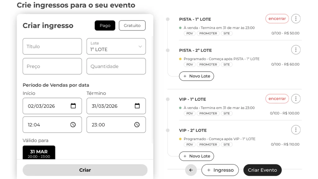 - Transparência na página do evento: deixe claro como os lotes funcionam e o que dispara a virada.